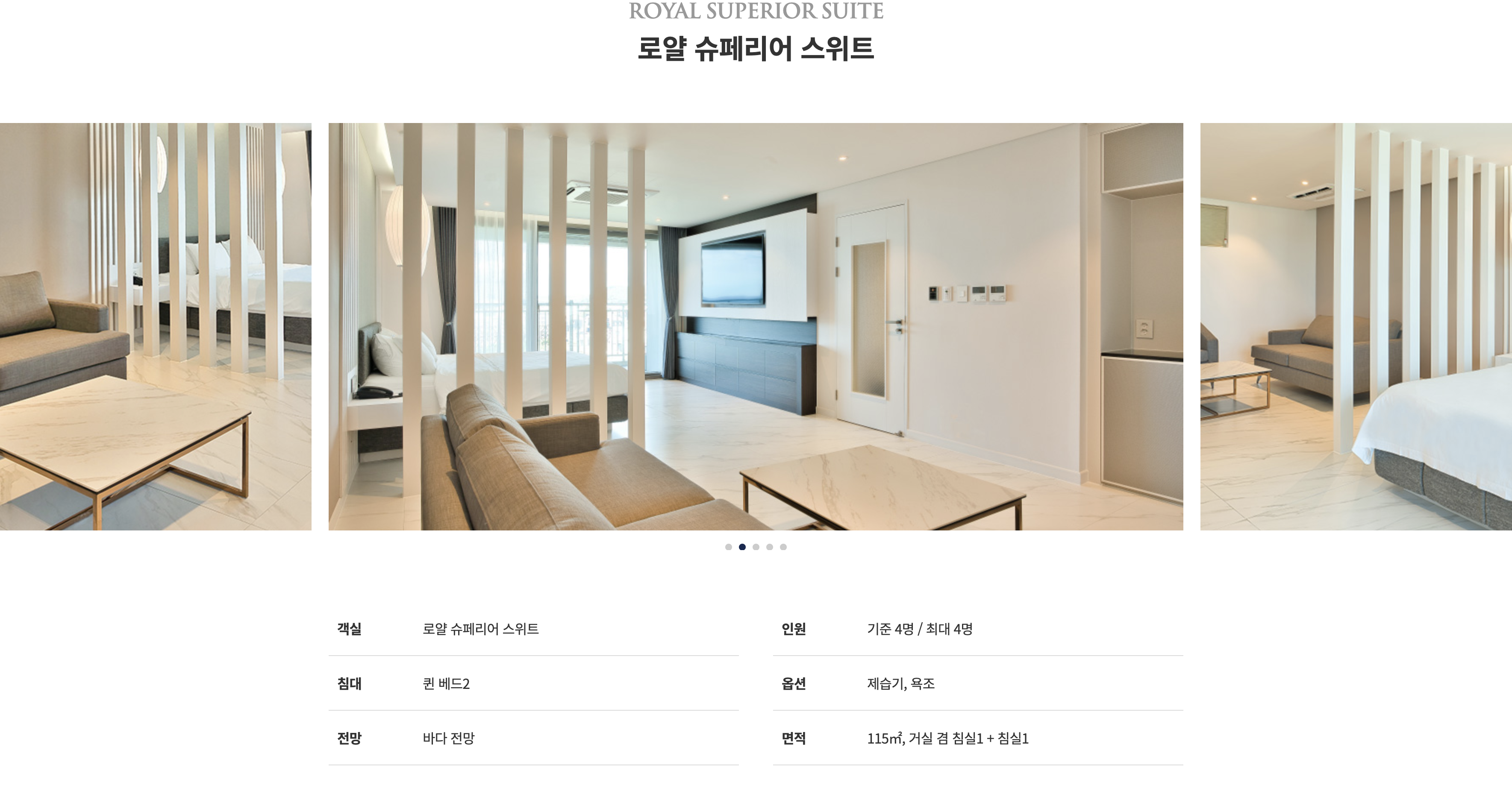 | 로얄 그랜드 스위트 | 180,000 | 거실겸 침실+1룸 45평 (4) | 5 |