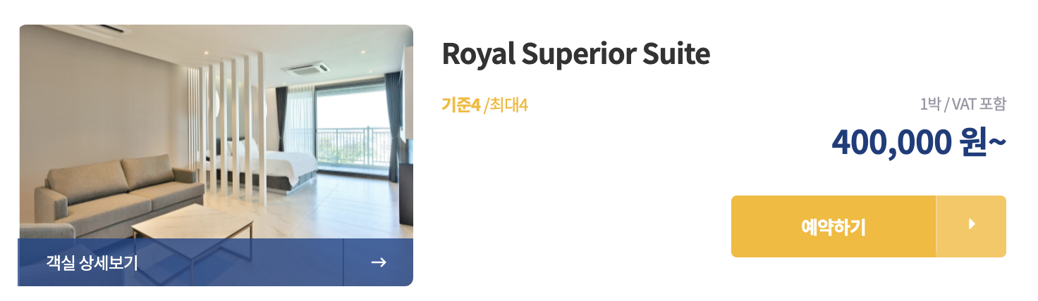 | 로얄슈페리어 스위트 | 180,000 | 거실겸 침실+1룸 34평 (4) | 3 |