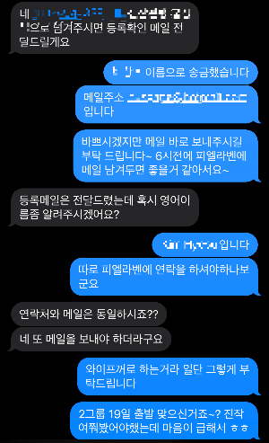 메일 수신 소요기간은 최대 7일 소요됩니다. 마음이 급하고 설레니 이 시간들이 정말 길게 느껴지더군요... 실참가자 확인 메일 수신 후 거래 순서는 아래와 같습니다. 확인메일이 수신되면 가장 중요한 티켓비용 거래를 진행합니다. 그 이후에는 아래와 같이 확인 필요하니 참고해주세요.
